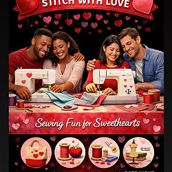 💖 Stitch With Love – Couples Sewing Class Stitch With Love is a fun and hands-on sewing experience designed for couples to connect, laugh, and create together in a relaxed studio setting. In this guided class, couples will work side by side to learn basic sewing skills while creating beautiful handmade projects to take home as keepsakes of their time together. Perfect for date night, Valentine’s celebrations, anniversaries, or simply trying something new, this class blends creativity with quality time. No sewing experience is required — just bring your partner and enjoy an evening filled with love, learning, and fun. 🧵 Couples May Create: • Matching throw pillows or pillow covers • His & hers tote bags • Heart-themed décor pieces • Aprons for cooking together • Keepsake fabric projects 💕 What’s Included: ✔ All sewing materials & fabric ✔ Use of sewing machines ✔ Step-by-step instruction ✔ Take-home projects ✔ Cozy, love-filled studio vibes